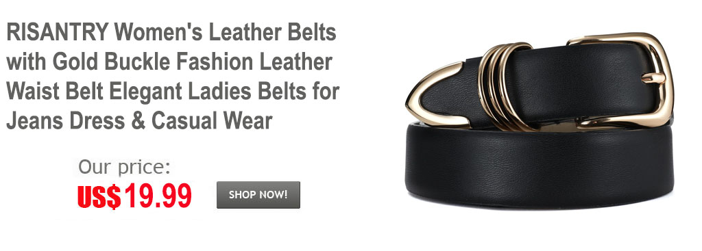 RISANTRY Genuine Leather Skinny Belt for Women Luxury Black leather With Vintage Gold Metal Buckle for Casual Fashion belts