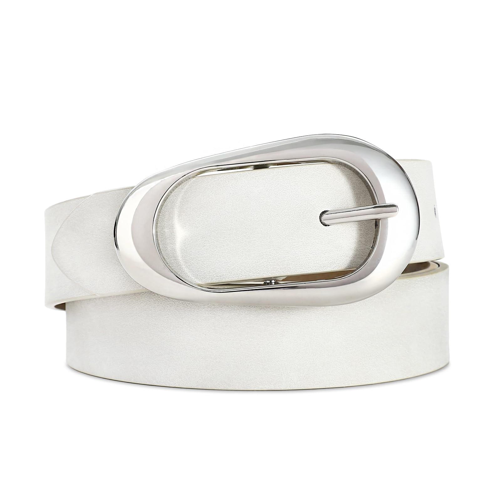 RISANTRY White Belt for Women Soft Suede belt with Silver Metal Buckle Perfect for Jeans and Casual Outfits