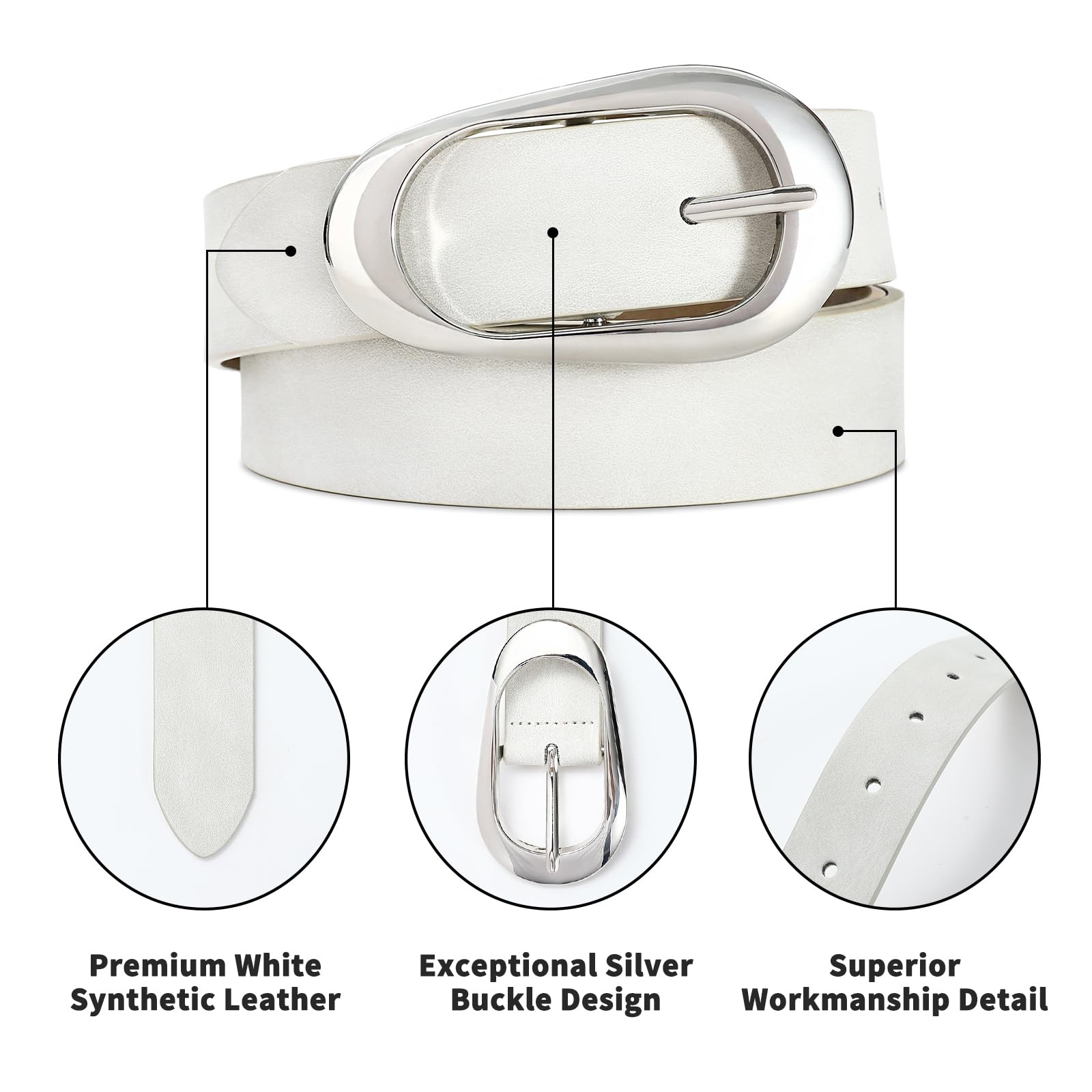 • 【Classic White Style】: This white belt for women is the perfect accessory to enhance both casual and formal outfits, pairing effortlessly with dresses, skirts, and pants.